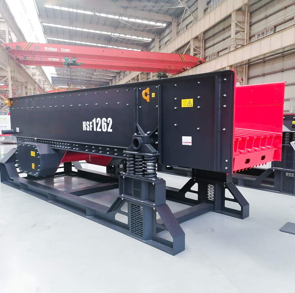 本公司生產(chǎn)的給料機系直線振動式給料機,具有振動平穩(wěn)、工作可靠、壽命長等特點,可為破碎機械連續(xù)、均勻的喂料,并對物料進行篩分,廣泛用于選礦、建材、硅酸鹽和化學工業(yè)中的破碎、篩分聯(lián)合設(shè)備中。