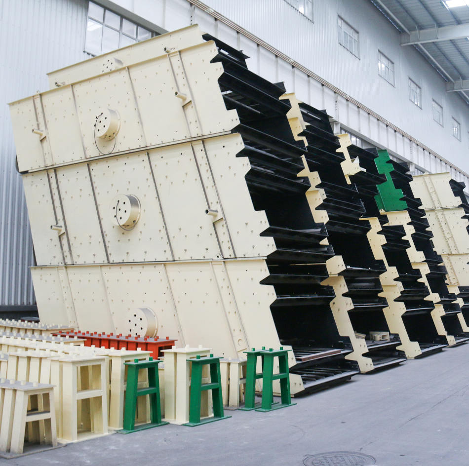 圓振篩的支承方式有懸掛支承與座式支承兩種。懸掛支承的篩面固定于篩箱上,篩箱由彈簧懸掛或支承,主軸的軸承安裝在篩箱上,主軸由帶輪帶動(dòng)而高速旋轉(zhuǎn)。帶偏心重的圓盤安裝在主軸上,隨主軸旋轉(zhuǎn),產(chǎn)生離心慣性力,使可以自由振動(dòng)的篩箱產(chǎn)生近似圓形軌跡的振動(dòng)。偏心重與軸承線的距離為激振偏心距。