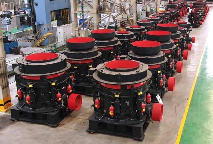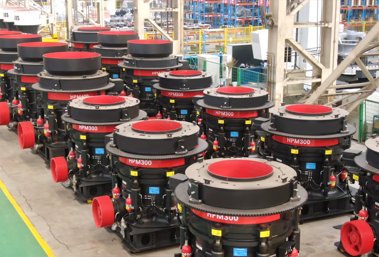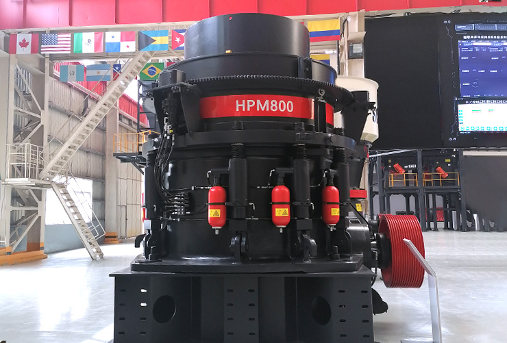 HPM系列圓錐破碎機能夠平緩釋放沖擊力,保護主機免遭過鐵損壞,過鐵通過后,排料口自動恢復到原有位置